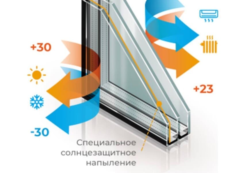 Сохраняет тепло зимой, и прохладу летом, при помощи специального напыления.